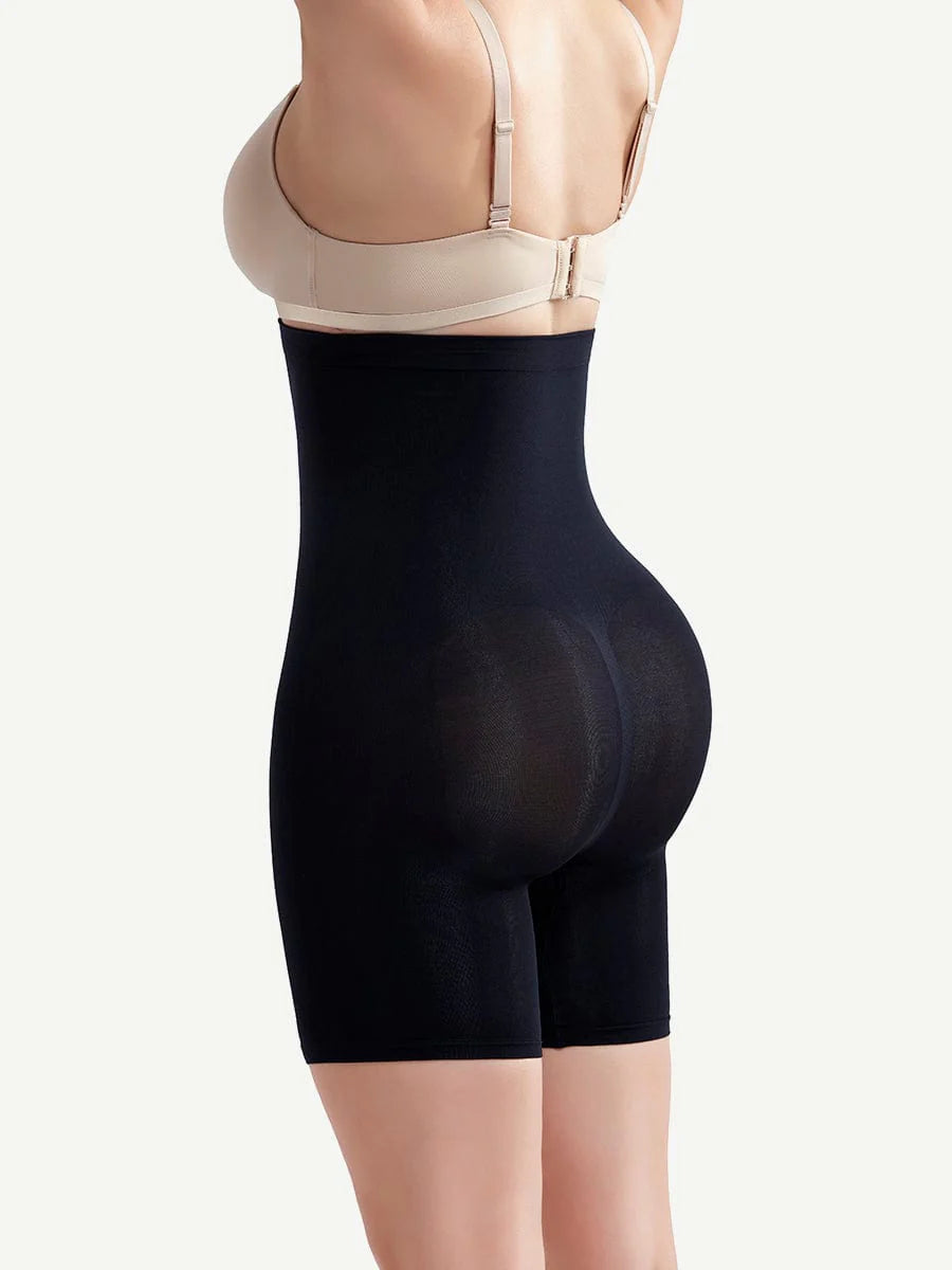 Den sömlösa designen gör shortsen helt osynliga under dina vardagskläder och ger känslan av en andra hud. Tre diskreta hyskor och silikonband håller plagget på plats och förhindrar att det glider, medan den mjuka passformen baktill formar rumpan på ett naturligt och smickrande sätt. Det strategiskt komprimerande materialet definierar mage och lår, och ger en jämn, elegant siluett som framhäver dina former på ett subtilt och naturligt sätt.